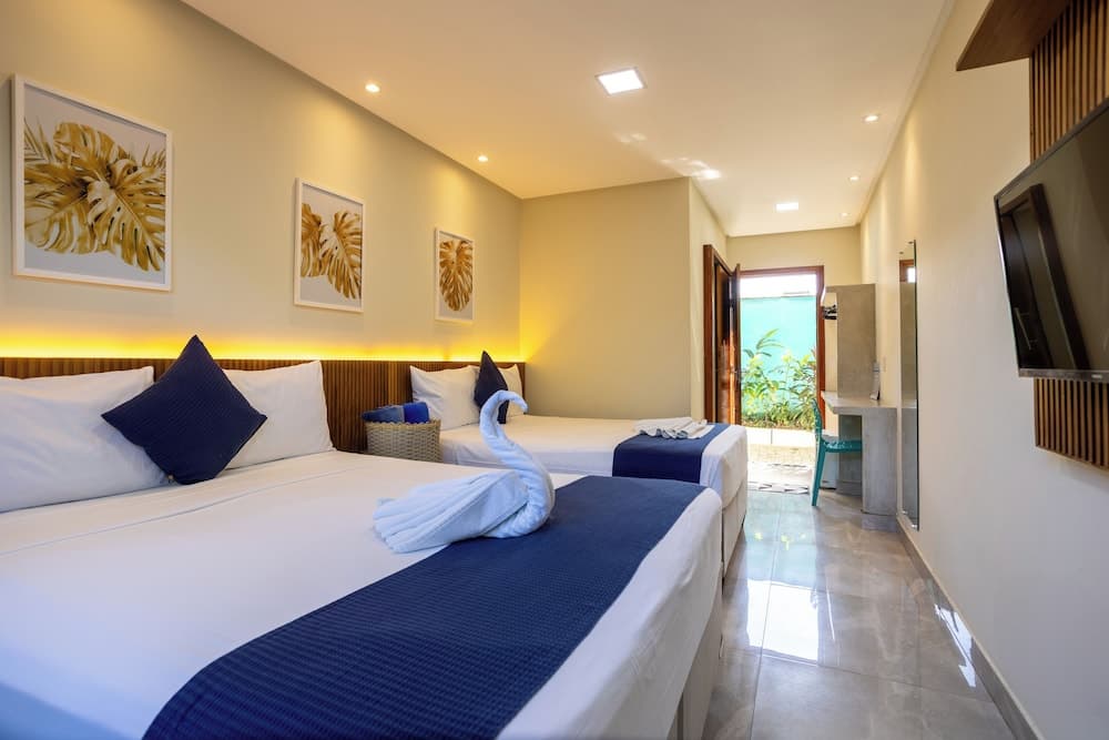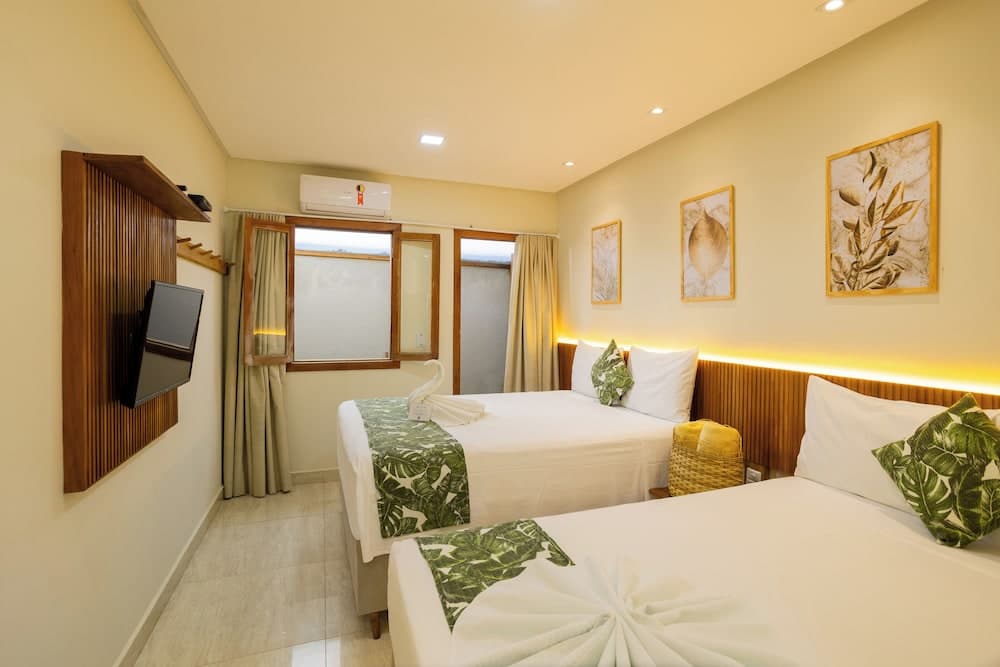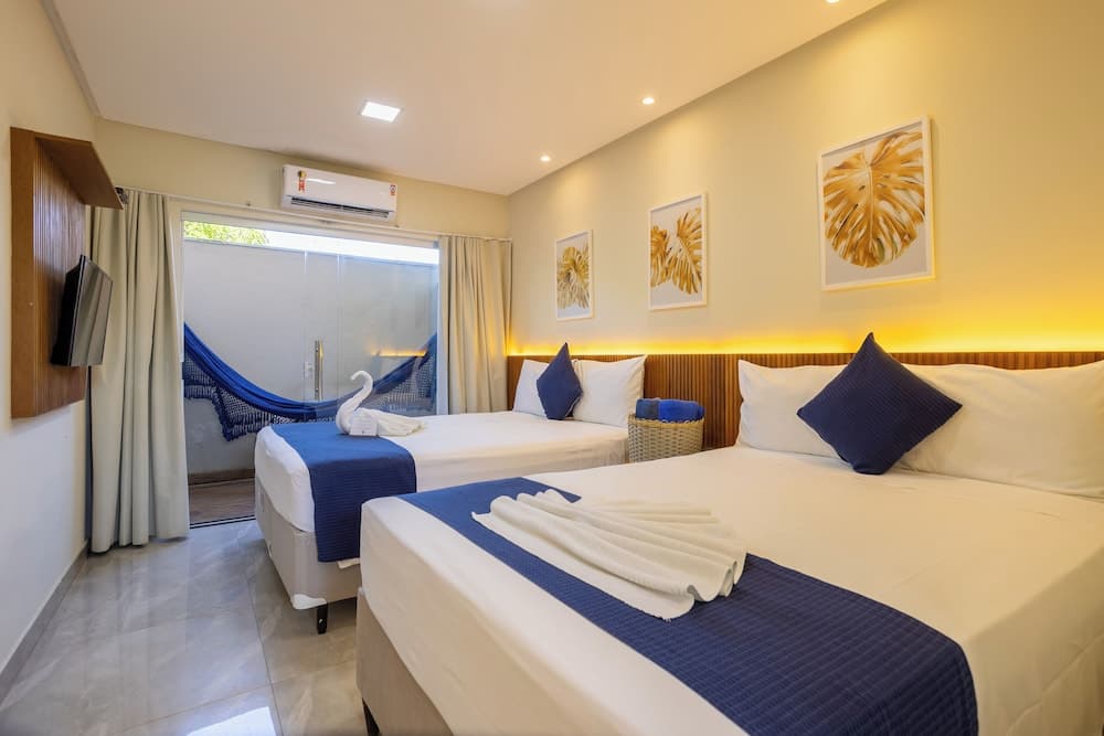 With a stay at Santorini Beach Hotel in Porto Seguro (Arraial d'Ajuda), you'll be within a 5-minute drive of Mucugê Street and Apaga Fogo Beach. This beach hotel is 9.8 mi (15.8 km) from Muta Beach and 0.4 mi (0.6 km) from Aquarios Island.