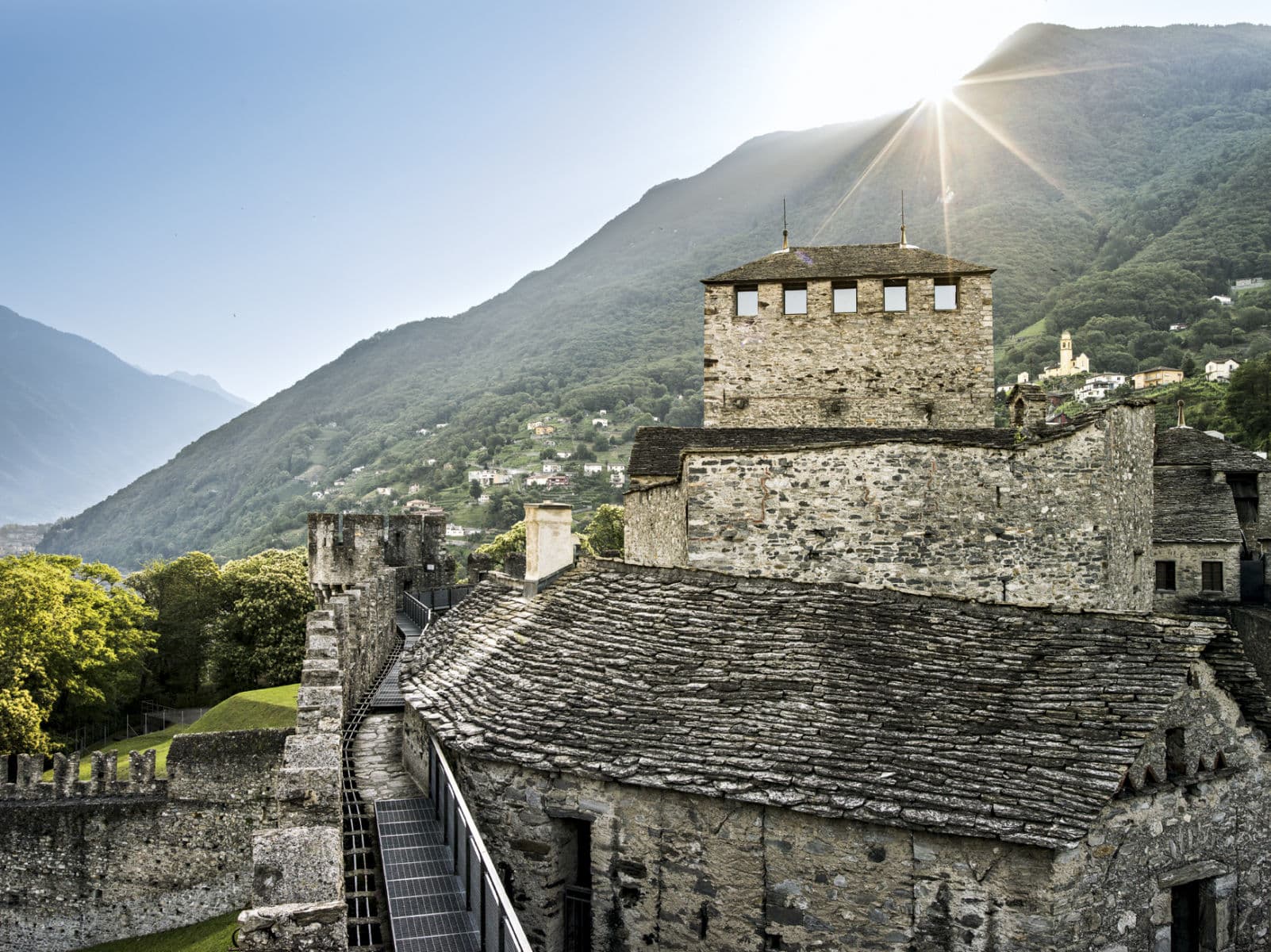 Viaje a Bellinzona. La capital del Tesino es muy conocida por sus tres castillos medievales declarados Patrimonio de la Humanidad por la UNESCO, en conjunto con la muralla del antiguo burgo. Continuación del viaje a St. Moritz, donde puede hacer una breve visita antes de continuar a Davos.
